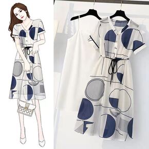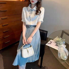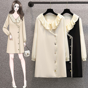 春季新款洋气减龄炸街连衣裙女大码微胖mm收腰衬衫裙...