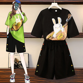 微胖大码女装夏季新款胖妹妹套装显瘦减龄洋气遮肉休闲...