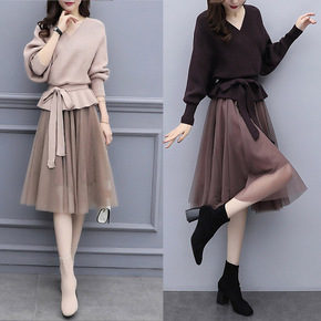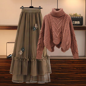 大码早秋季套装女2022新款遮肉显瘦毛衣减龄高腰网...