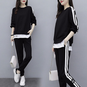 大码女装胖妹妹早秋装2020年新款洋气休闲套装遮肉...