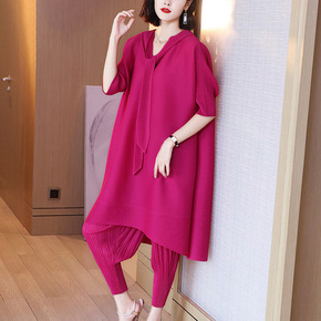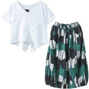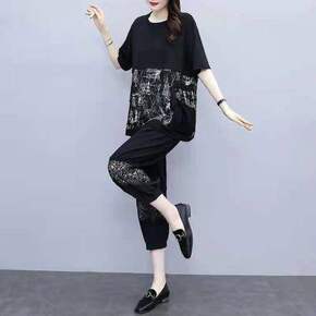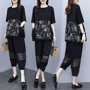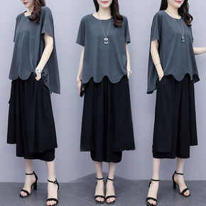 夏季宽松七分裤减龄两件套潮加肥加大码胖妹妹遮肚显瘦...