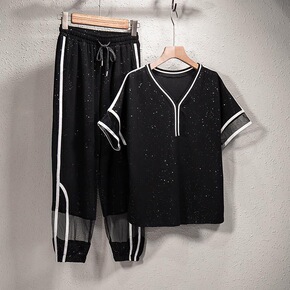 2022夏季新款时尚洋气显瘦大码女装休闲运动港风胖...