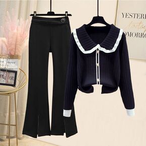 胖妹妹时尚套装2022年早秋新款减龄娃娃领上衣女微...