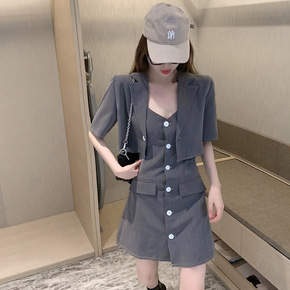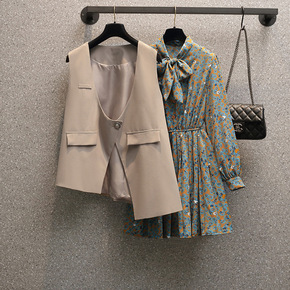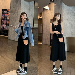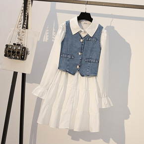 2022春装大码女装牛仔外套背心裙两件套胖妹妹洋气...