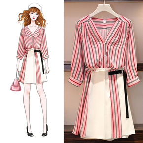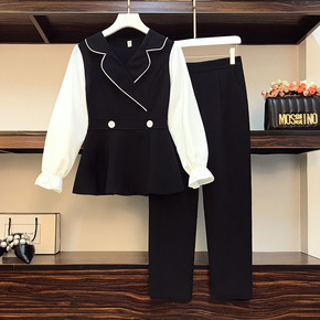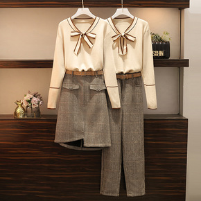 大码女装2021新款很仙的网红套装减龄洋气胖妹妹显...
