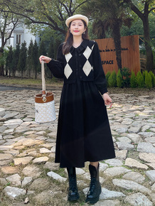秋冬大码女装2021年新款吊带连衣裙胖减龄显瘦洋气...