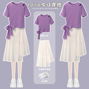 大码女装夏装2022年新款胖妹妹显瘦心机套装减龄洋...