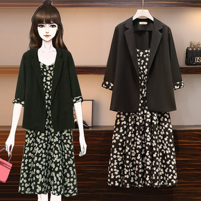宽松显瘦碎花连衣裙女夏2022年胖妹妹洋气防晒衣套...