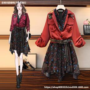 大码女装早春穿搭套装洋气减龄遮肉显瘦气质时尚碎花连...