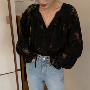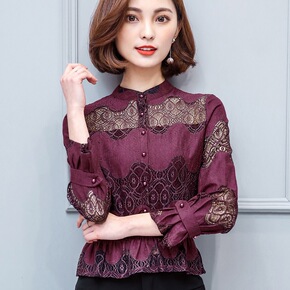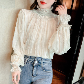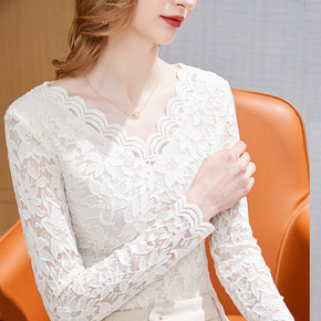 2020春秋装新款女装蕾丝打底小衫洋气时尚雪纺衬衫...