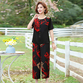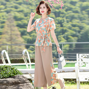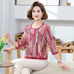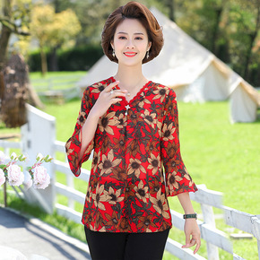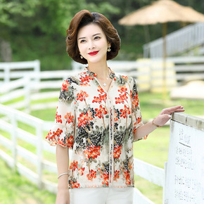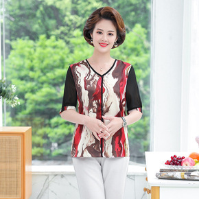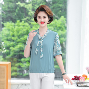 妈妈夏季新款雪纺衫上衣中年妇女半袖t恤中老年洋气大...