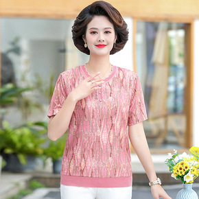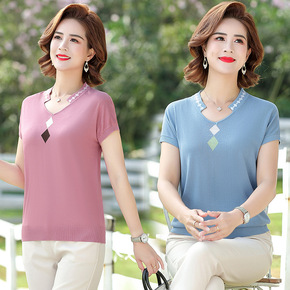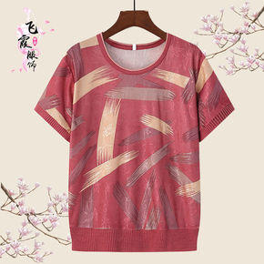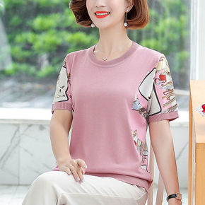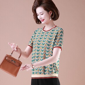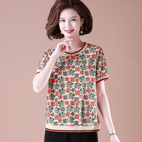 时尚针织短袖T恤2022年夏季新款上衣女装妈妈装小...