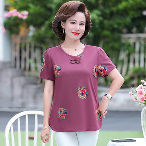中老年女装夏装短袖T恤新款50岁妈妈款夏天衣服小衫...