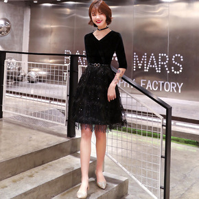 洋装小晚礼服裙女宴会气质黑色名媛法式派对连衣裙平时...