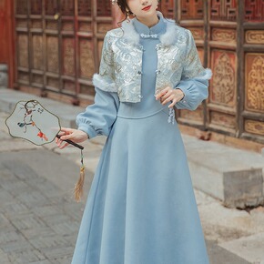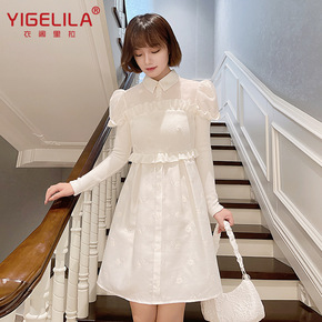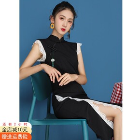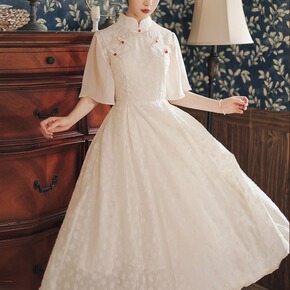 民国风洋装气质复古中国风仙鹤印花性感修身短款旗袍改...