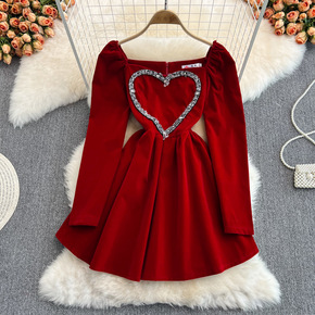 礼服小洋装名媛高端女装2021新款潮心机挂脖一字领...