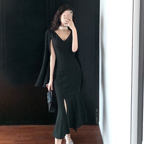 轻熟风御姐范小众气质中长款显瘦年会名媛洋装晚会聚会...