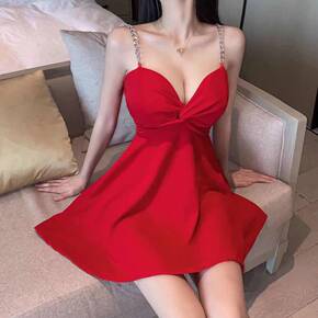 减龄小洋装名媛高端女装甜美蝴蝶结吊带修身短款礼服连...