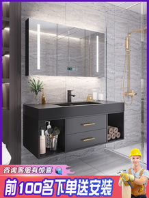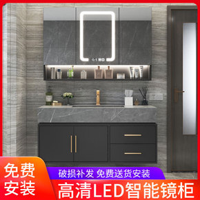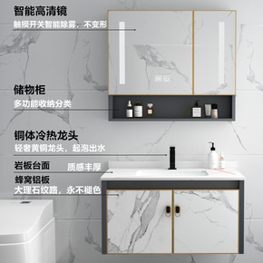 轻奢岩板浴室柜洗漱台卫生间洗手盆柜组合智能镜柜太空...
