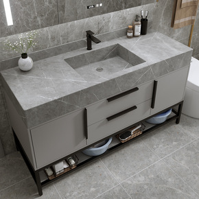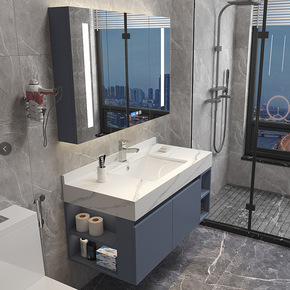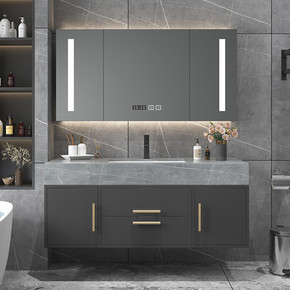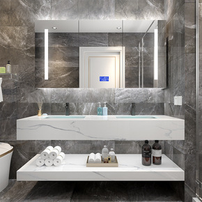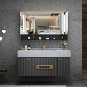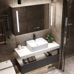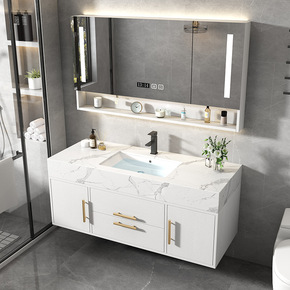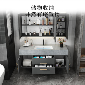 简约现代浴室柜组合卫生间智能洗脸盆洗漱台洗手池岩板...