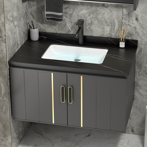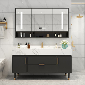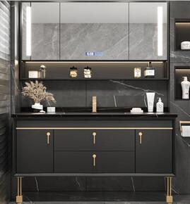 轻奢岩板浴室柜组合实木卫浴柜卫生间一体洗漱台洗脸盆...