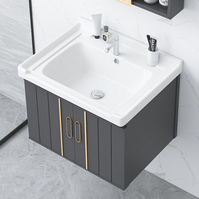 家用简约太空铝洗脸盆浴室柜组合洗漱台卫生间挂墙式小...