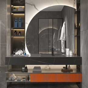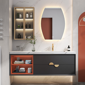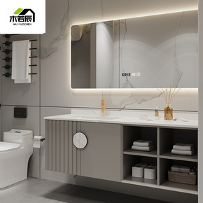 轻奢岩板一体盆浴室柜组合现代简约实木洗脸盆智能镜洗...