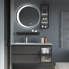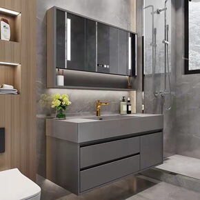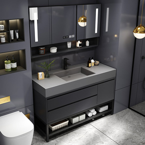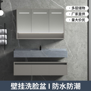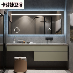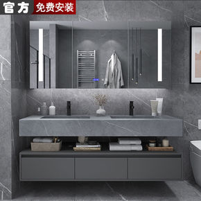 岩板一体浴室柜组合卫生间洗漱台洗脸池人体感应镜柜洗...