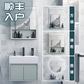 浴室柜组合简约阳台太空铝实木镜柜卫生间挂墙洗漱洗手...