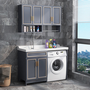 太空铝阳台洗衣机柜子组合切角带搓衣板洗手池一体伴侣...
