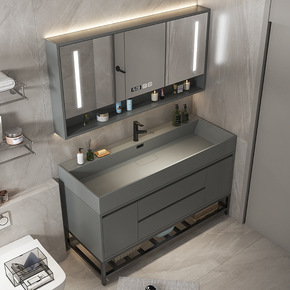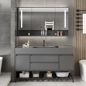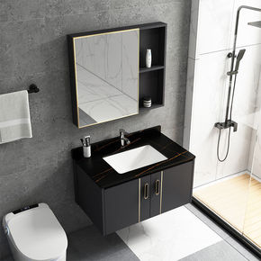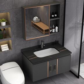 轻奢太空铝浴室柜小户型卫生间岩板洗脸盆洗漱台洗手盆...