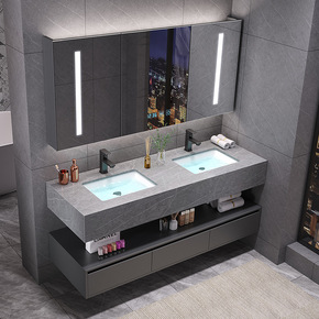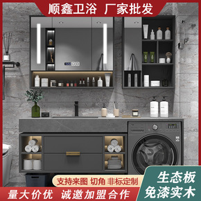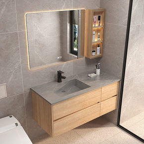 岩板一体现代简约轻奢浴室柜组合洗脸洗手卫生间洗漱台...