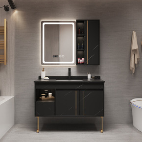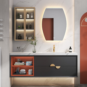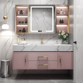 现代简约轻奢岩板一体浴室柜组合洗手洗脸面池卫生间洗...