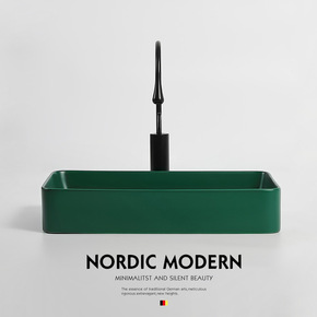 北欧极简墨绿色台上盆长方形洗手台盆面卫生间陶瓷洗脸...
