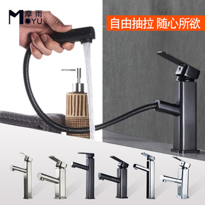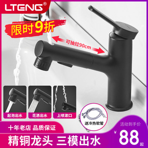 黑色抽拉式面盆冷热加高水龙头全铜体台盆洗手池脸盆龙...