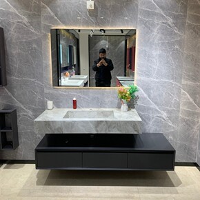 15号#岩板一体浴室柜组合卫浴现代轻奢洗手洗脸卫生...