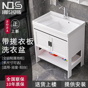 阳台洗衣池太空铝浴室柜陶瓷洗手盆落地式柜组合带搓衣...