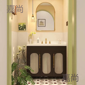 美式轻奢岩板实木浴室柜组合现代橡木卫浴吊柜智能镜柜...