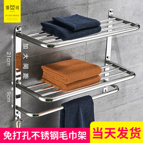 家用浴室毛巾架浴巾架卫生间置物架免打孔厕所卫浴壁挂...