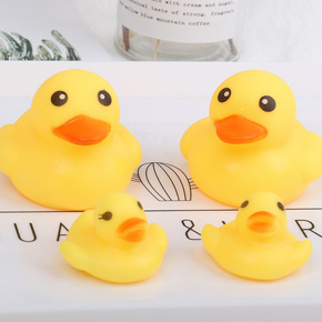 儿童戏水玩具一大三小洗澡鸭子 捏捏叫小号黄鸭地摊热...