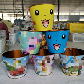 新款卡通印花铁桶 儿童沙滩玩具小铁桶 玩沙挖沙戏水...