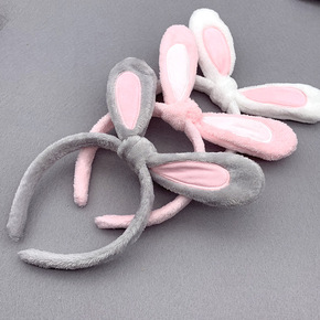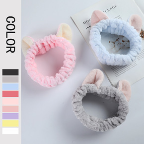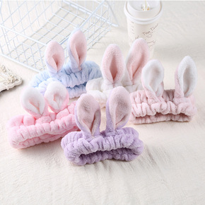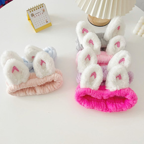 韩版发饰洗脸面膜束发带可爱立体毛绒发带简约兔耳朵头...
