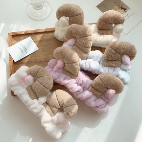 厂家直供可爱毛绒洗脸头箍日韩甜美化妆头饰束发带米色...