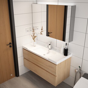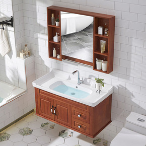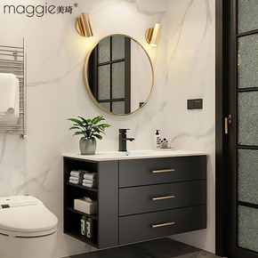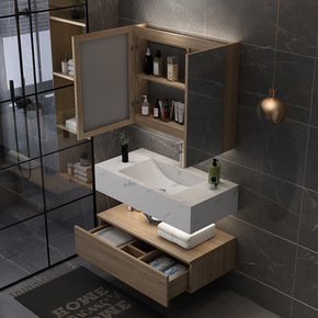 岩板实木浴室柜组合 半敞开式智能镜柜挂式洗漱台 金...