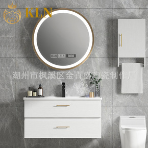 轻奢实木浴室柜 智能镜双抽屉免漆挂墙式洗漱台 金百...