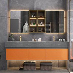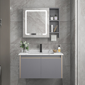 岩板浴室柜组合 智能除雾灯带镜柜轻奢洗漱台卫浴柜 ...