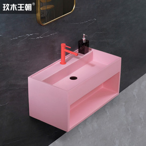 人造石浴室柜组合一体洗手盆挂壁式浴室台盆面盆柜粉色...