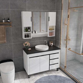 实木浴室柜双抽屉洗漱台 黑&白&灰...