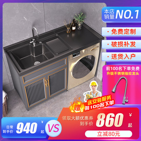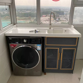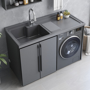 洗衣机柜阳台洗衣池太空铝洗衣柜洗衣机柜伴侣洗衣槽洗...