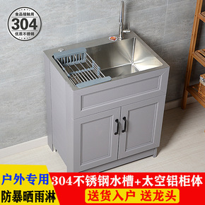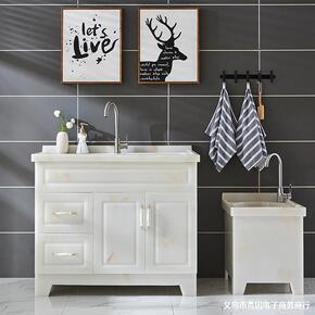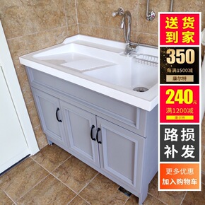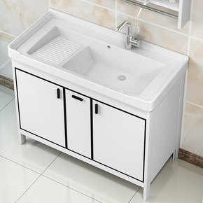 太空铝洗衣柜阳台洗手盆陶瓷洗衣池带搓板室外落地洗衣...